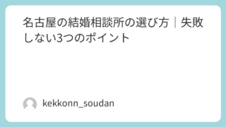 👉「名古屋で結婚相談所を探している40代の方へ。結論から言うと、40代こそ結婚相談所の利用は非常に有効です。この記事では、名古屋でおすすめの結婚相談所と失敗しない選び方をわかりやすく解説します。」40代で結婚相談所ってあり?結論からお伝えし...